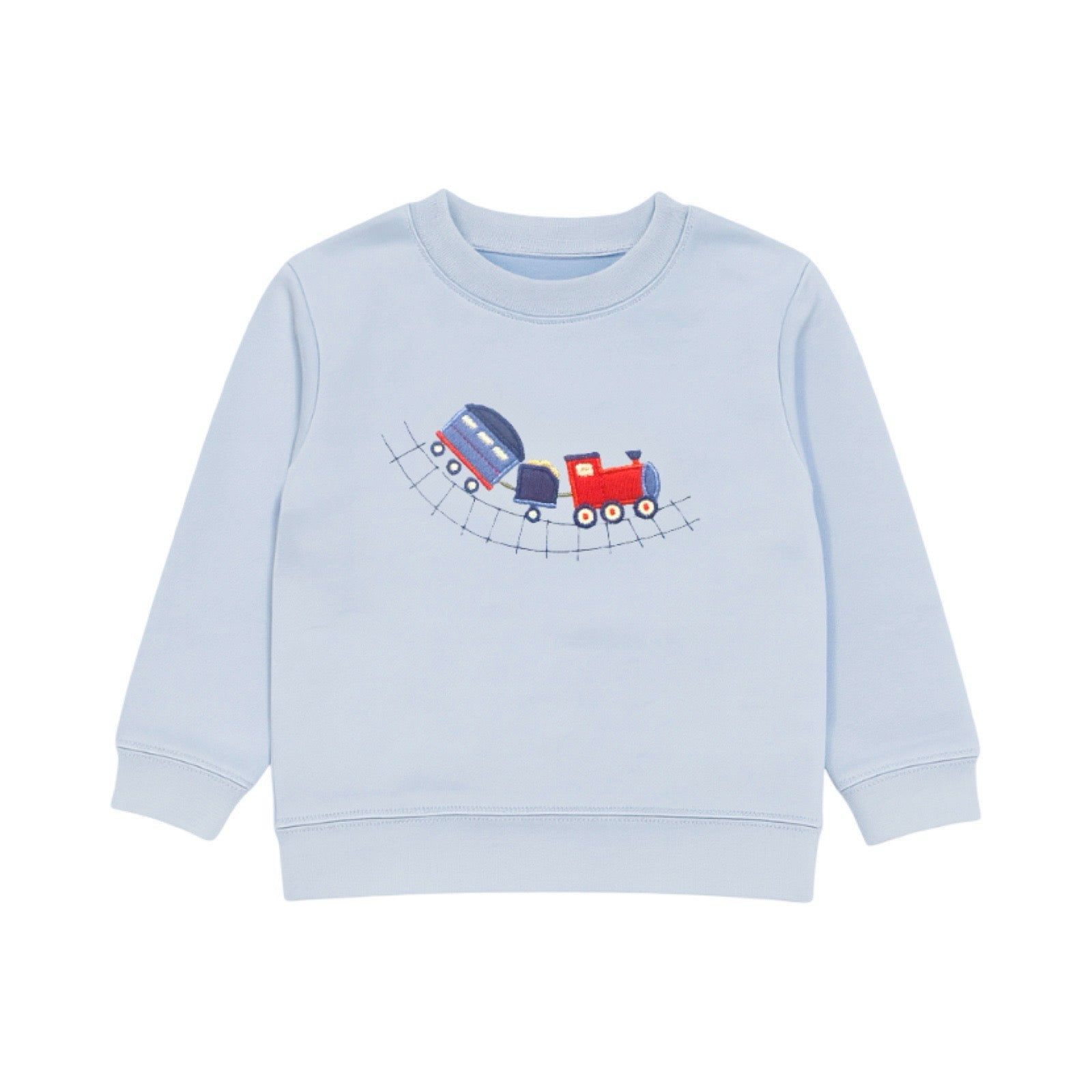 This playful sweatshirt is perfect for your little sidekick, combining cozy comfort with a playful train track design that he'll love. Made to keep him warm and snug, it’s an ideal companion for all his adventures and everyday fun.