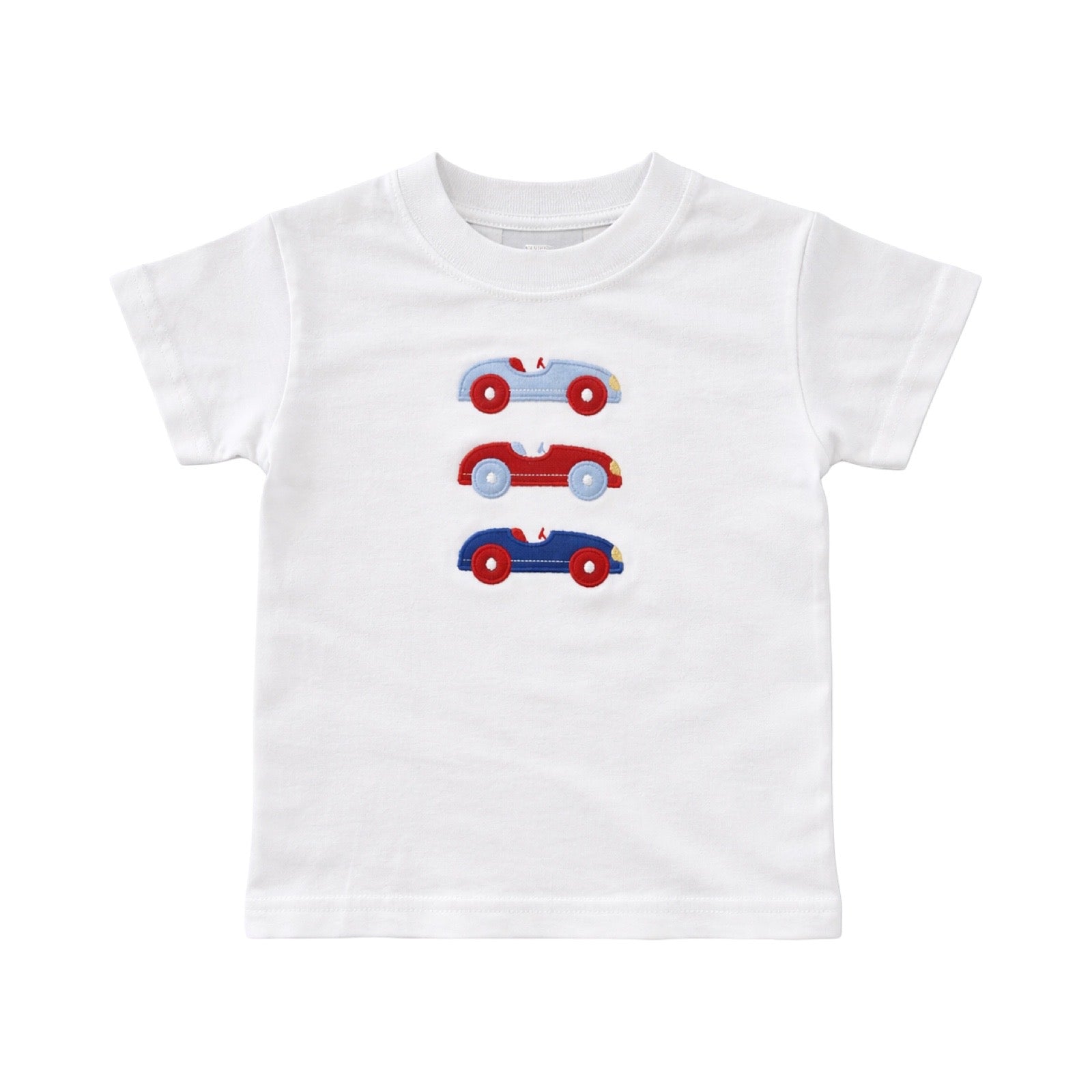Rev up playtime with this fun applique tee featuring three speedy racecars and the bold "Start Your Engines" design. Perfect for little speed enthusiasts, this shirt combines comfort with personality. The vibrant applique adds dimension and durability, making it a go-to favorite for everyday adventures. Available in multiple sizes to fit your growing racer.