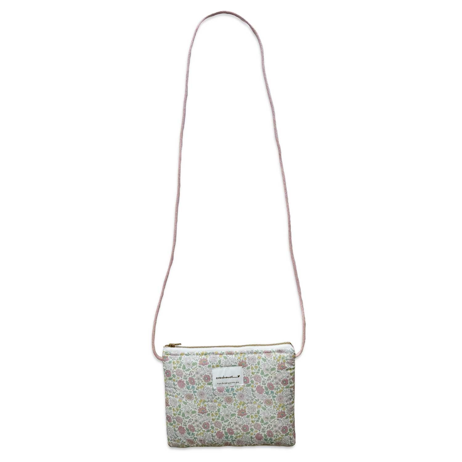 This shoulder bag is perfect to keep all your daughter's treasures but also great for mommy too. Featuring a lovely spring flowers print, a slightly puffy design, a metal zipper, and a long shoulder strap.