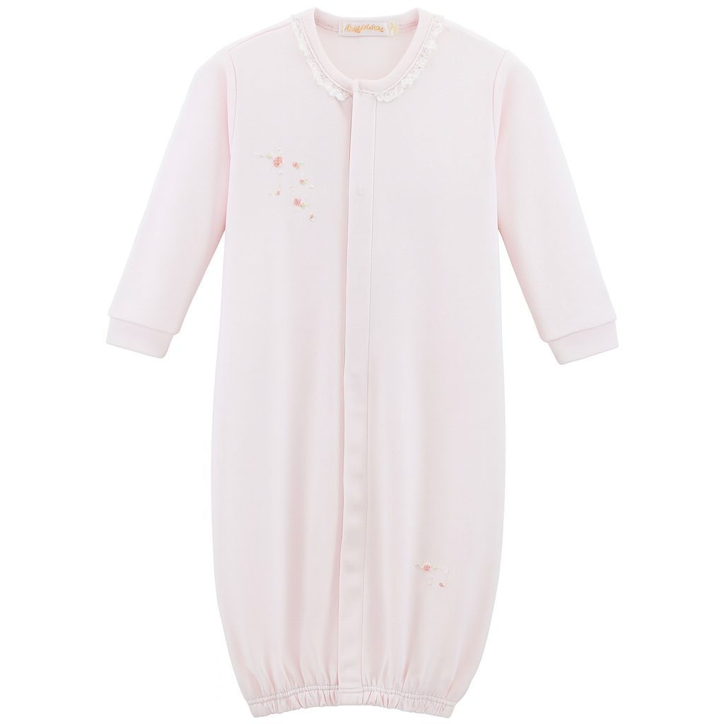 This charming converter gown brings double the fun with just a few snaps—two adorable outfits in one! Adorned with delicate spring flower embroidery and sweet lace trim at the neck, it’s perfect for fresh seasonal style and easy dressing adventures