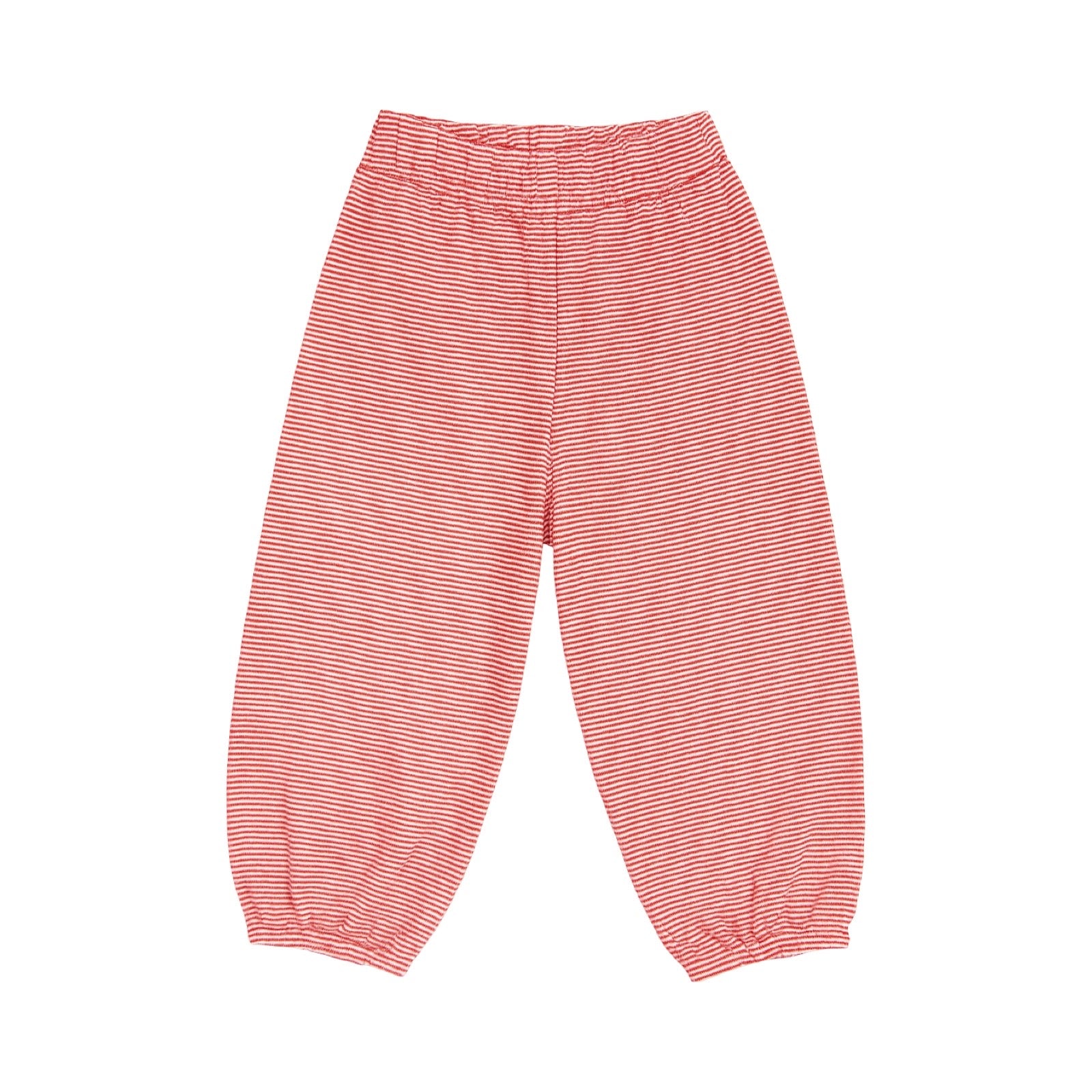 Love this cute little pant for your littles on the go. Crafted from soft jersey cotton knit, they feature an elastic waist and elastic cinched ankles so your little one will be ready to play in style.