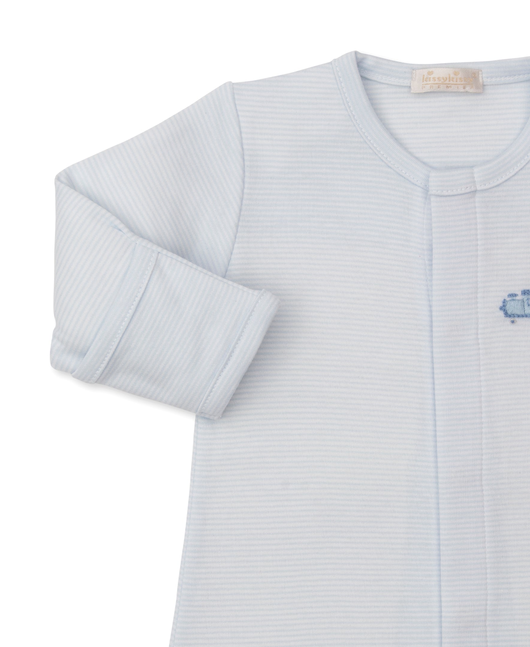 This adorable blue and white striped converter gown features a charming hand-embroidered train that adds a playful twist to your baby’s outfit. Crafted from soft, cozy fabric, it keeps your little one snug and comfortable while inspiring imaginative adventures. Perfect for everyday wear with a touch of whimsy!