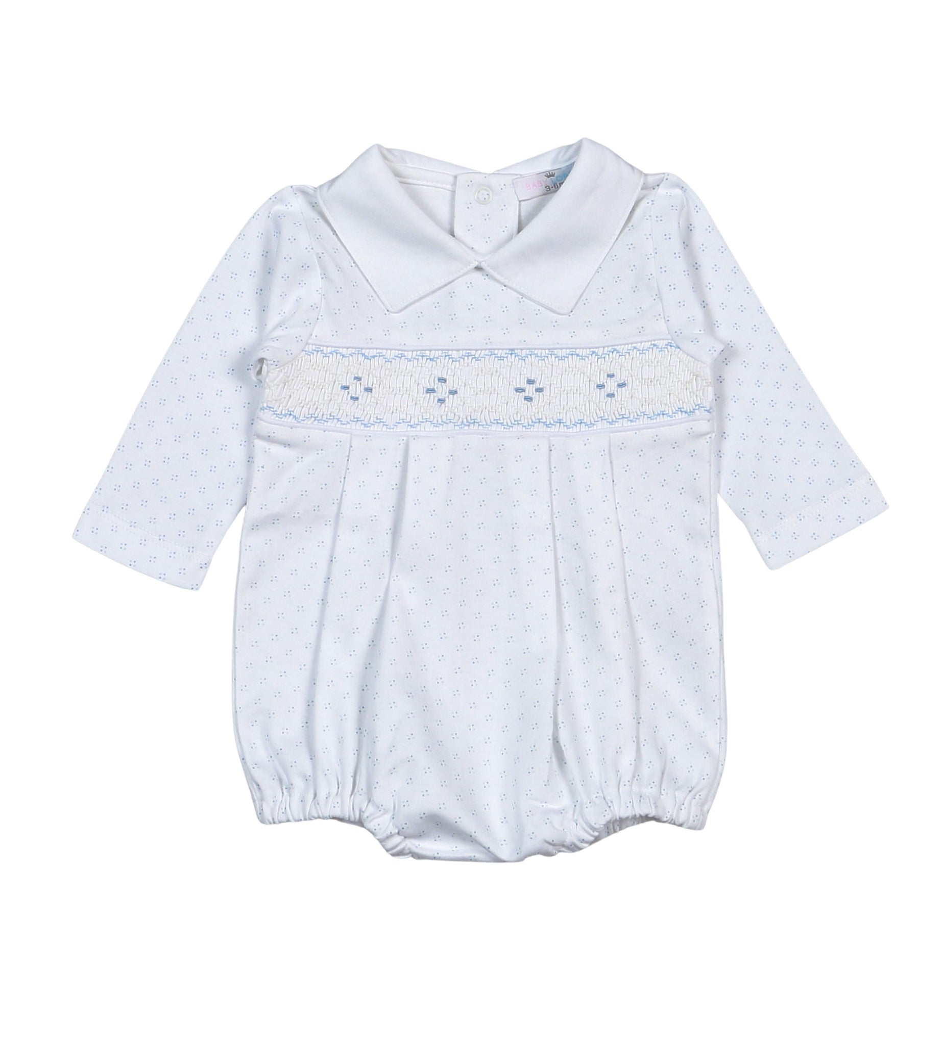 Dress your little one in whimsy and charm with the Tim Dots Smocked Long Sleeve Bubble. Featuring playful dotted patterns and timeless smocked detailing, this long sleeve bubble brings a touch of classic elegance while keeping comfort front and center. Perfect for playful days and special occasions, its cozy fit ensures your baby stays snug and stylish all day long.