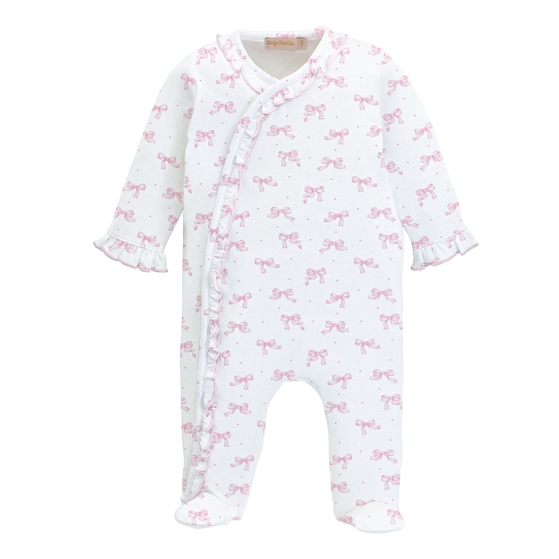 This darling little footie features delicate ruffle details and charming printed bows, perfect for your baby girl’s sweetest moments. Soft and cozy, it keeps tiny toes snug while adding a playful touch to her outfit. Ideal for everyday wear or special occasions, this footie blends comfort with adorable style.