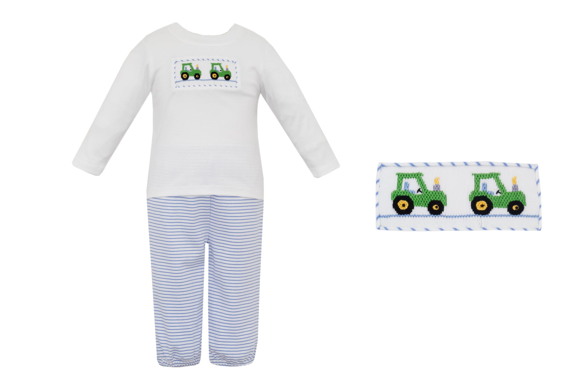 Dress your little one in the Tractor Blue Stripe Knit Pant Set for cozy comfort and countryside charm. This soft, snug outfit is perfect for playful days and cuddly moments, bringing a touch of farmyard fun to every adventure.