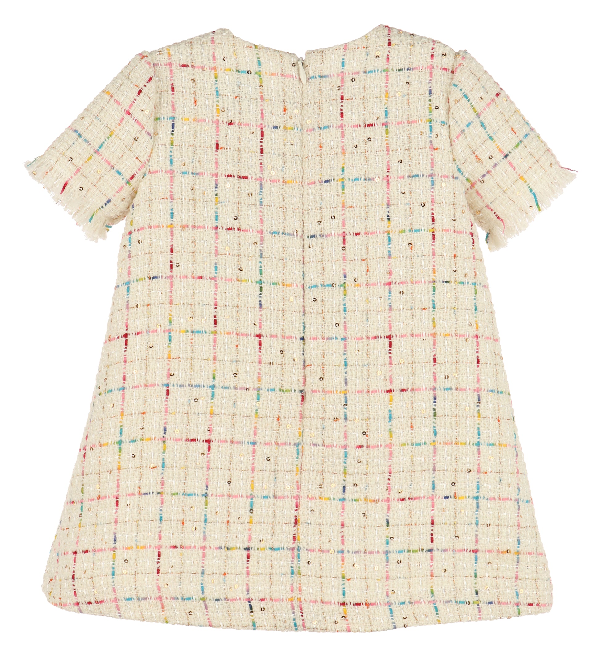 This ivory tweed A-line dress captures the timeless elegance of a classic Chanel-inspired look. Crafted with refined details and a flattering silhouette, it offers a sophisticated style perfect for your darling girl’s special occasions. The luxurious texture and clean lines make it a graceful choice that blends tradition with modern charm.